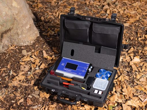 The PiCUS TreeTronic analyzes the condition of the wood of a tree with the help of measurements of the electrical resistance of the wood. The electrical resistance of the wood is essentially influenced by the water content and the ions dissolved in the water. Rots often have a high level of moisture and therefore low resistance. In addition, the chemical composition of the wood and the cell structure influence the resistance. Propagation of the electrical field During a measurement, the TreeTronic device couples electrical voltages of up to 100 volts to the measuring points and measures the resulting electrical field. Taking into account the geometry information of the measuring plane, a complex software calculates the apparent electrical resistances in the area of ​​the measuring plane. These resistances are shown in a colored tomogram. By overlaying PiCUS sonic tomograms with electrical resistance tomograms, in many cases the remaining wall thickness can be determined more precisely for the purpose of assessing the fracture safety. Unlike sonic tomography, ERT suffers less from cracks in the trunk, so the TreeTronic tomograms often help to interpret the sonic tomograms correctly.